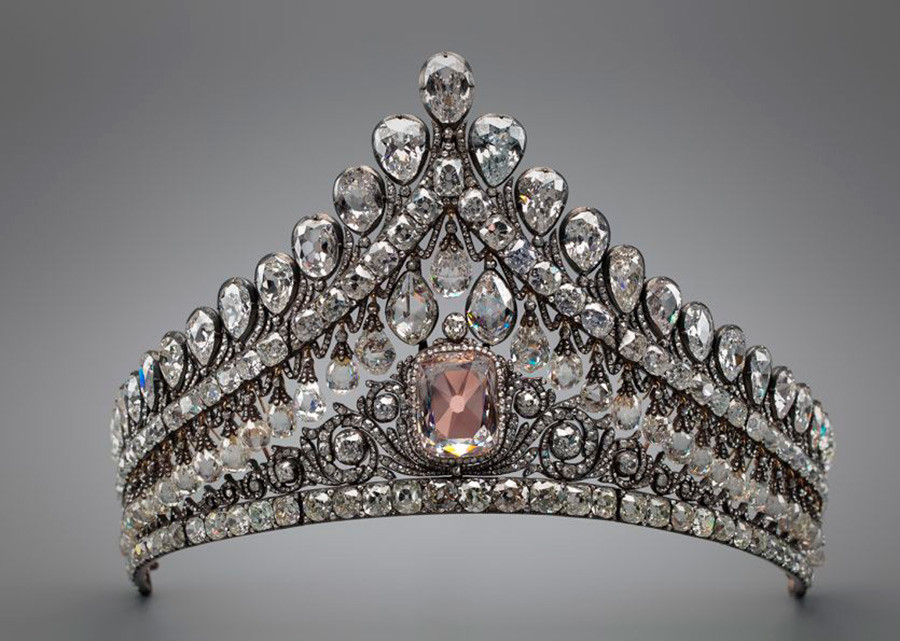 Fue hecha por el joyero de la corte Carl Bolin para Alexandra Fiódorovna, la esposa de Nicolás I. Estaba realizada en platino, diamantes y oro blanco, de la que cuelgan más de 20 perlas. Las cuatro hijas del Zar Nicolás II -Olga, Tatiana, María y Anastasia- nunca llegarían a usarla. Así que fue vendida al duque de Marlbrough, quien a su vez la vendió a Imelda Marcos, la mujer del que fuera presidente de Filipinas durante 21 años.