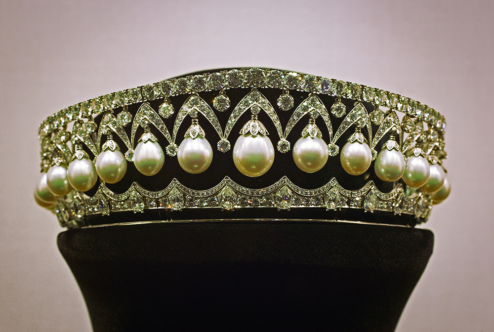 Esta tiara también fue creada por Carl Bolin, el cual realizó 15 anillos de diamantes entrelazados, adornados con 15 perlas colgantes, sustituibles por una esmeralda en la misma forma en cada redondel. Originalmente era para la gran duquesa María Pávlovna de Rusia, pero, después de la revolución, la reina Mary de Inglaterra se la compró a la princesa Elena Vladímirovna Románova, hija de la gran duquesa. Actualmente, es la tiara favorita de la reina Isabel II.